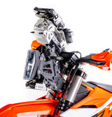 The new Aurora Rally Kit is a complete navigation system designed for the Husqvarna 701 and KTM 690. It brings a new level of refinement to the Lite kit series, introducing a stiffer and more durable three-piece aluminium tower, improved airflow at high speed, and more powerful lights. All offer faster and cleaner service access around the wiring, lights, and frame. With OEM part reliability and no frame modification required, the Gen2 Lite Kit delivers rally ergonomics and adventure functionality in a compact, lighter package.