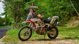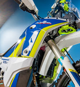 It all started with Dimitri’s passion for innovation and improvement. After creating the pioneering magnetic roadbook and gaining the respect of the community, he set his sights on a new challenge: transforming the 701 Enduro into a true Rally Replica. With the help of his close friend Nicolas from Morphitech, the two spent endless hours prototyping, clay modeling, and designing. Their breakthrough came with the very first tank brackets that fit the bike without any frame modifications – the foundation of what would become the full kit, and the beginning of the Aurora story.